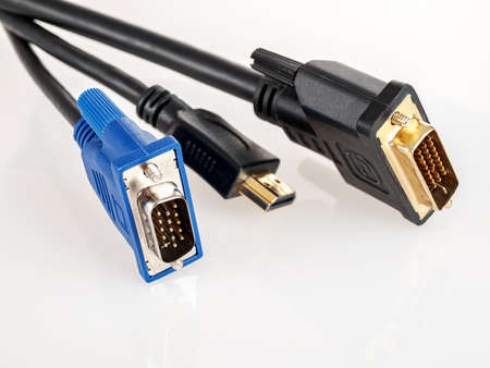 Hdmi, DVI, VGA video cables, connection of screens, monitors, displays, projectors, analog and digital interfaces