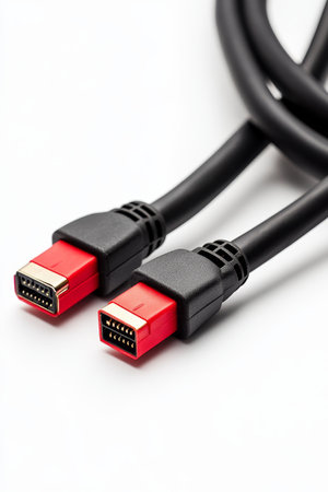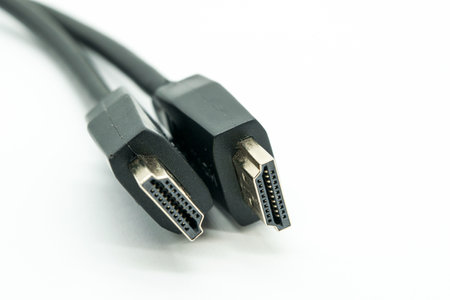 Close-up view of HDMI cables on a white background.