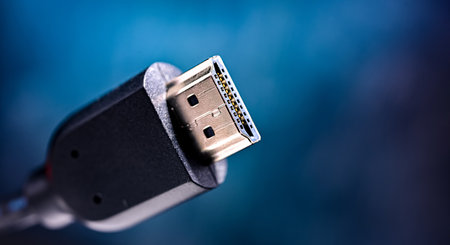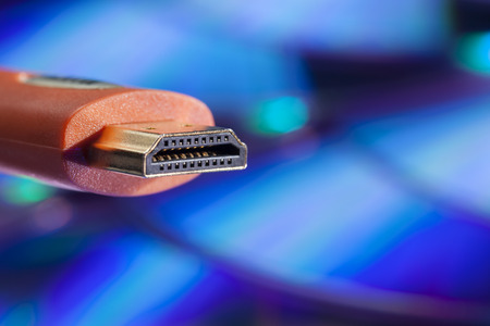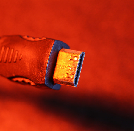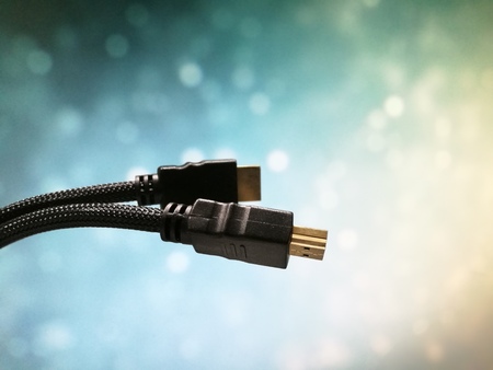close shot of HDMI cable on bokeh background