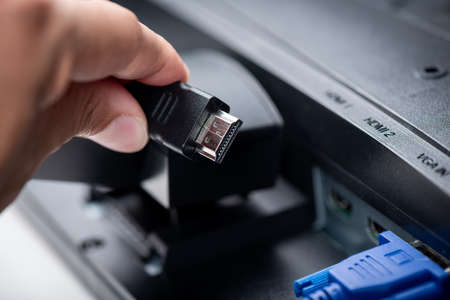 HDMI Cable on computer closeup shot