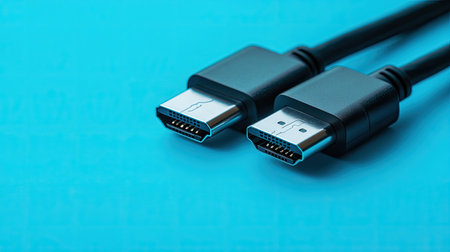 HDMI Cable connector and copy space on blue background color mood and tone style