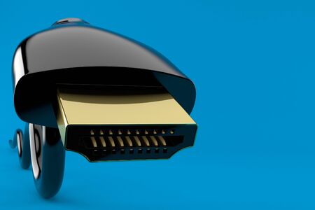 HDMI plug close-up isolated on blue background