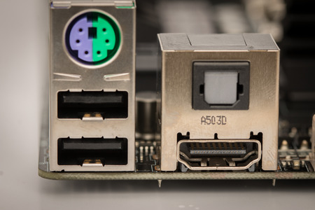 vgi rear ports of a pc on white plane