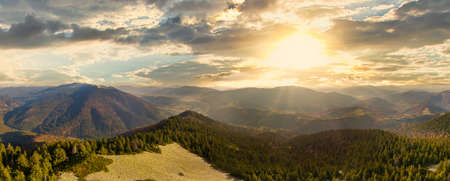 sunset panorama. sunset over a forest in Poland
