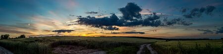 Beautiful sunset over the field. Landscape with beautiful sky.