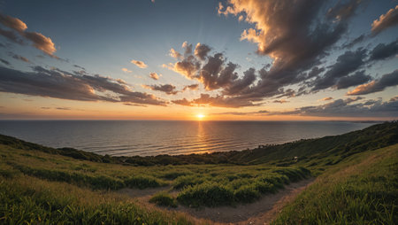 Ethereal Sunset Glow Over Tranquil Horizon Idyllic Scenic Landscape Photograph