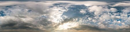 beautiful clouds in blue sky with evening sun. Seamless hdri panorama 360 degrees angle view with zenith for use in 3d graphics or game development as sky dome or edit drone shot