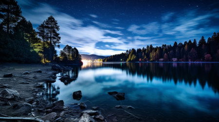 Milky way and stars reflected in lake water background