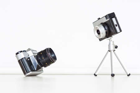 Two vintage cameras together. Big and little concept.
