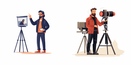 Photographer and videographer with camera and tripod. Vector flat cartoon illustration