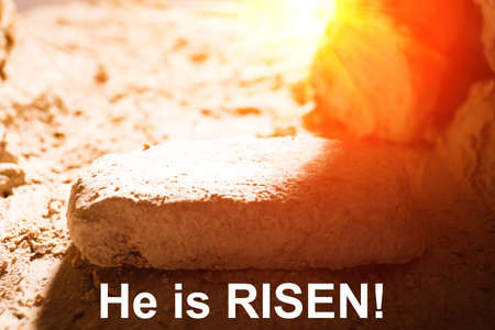 The stone is rolled away from the grave on Easter morning. Jesus risen