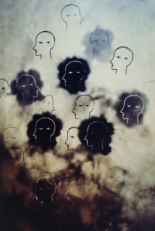 Multiple profiles blend together with dynamic colors capturing the essence of contemplation or introspection in an artistic manner.