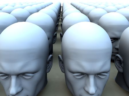 Colorful wooden heads as symbol of diversity, segregation and racism.