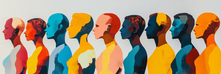 colorful silhouettes of heads lined up in a row. abstract illustration with symbolic meaning. High quality photo