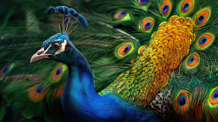 Close-up of vibrant peacock feathers, macro photography creating stunning background