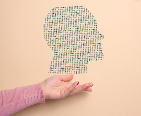 human head silhouette. Artificial intelligence training based on the available information. Processing of arrays of information