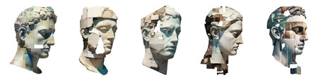 Collection of modern minimalist Greek head statues on isolated background. Generative AI