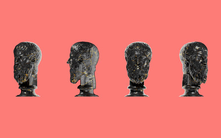 Plato Greek Philosopher 3D Digital Bust Statue in Black Marble and Gold