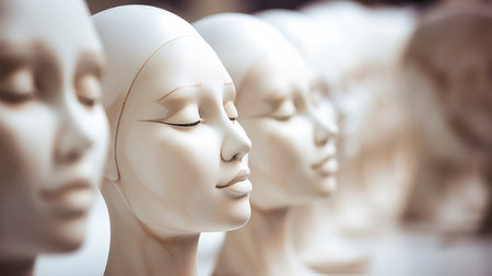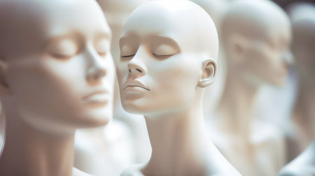Mannequins made of artificial material stand in rows,Generated by AI