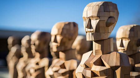 A group of wooden figures close-up. Generative AI.