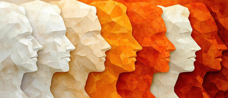 Spectrum of human profiles in vibrant colors against a minimalist background, diversity and inclusion concept.