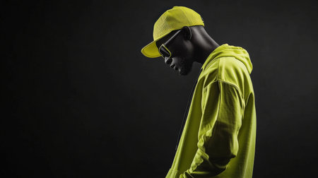 Portrait of a stylish young African man wearing a fashionable cap set against a vibrant and contemporary background The image captures a confident and modern expression