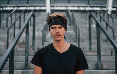 Portrait of young man in sportive clothes that have workout outdoors at daytime