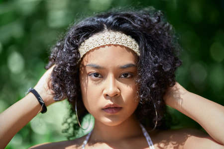 Portrait of a beautiful woman with afro hairstyle at the festival