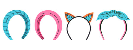 Cartoon hair band. Hand drawn female hair hoops and fabric headbands flat vector illustration collection on white background