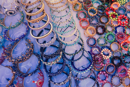 Jewel and gem for sale on market. Colorful traditional uzbek ancient handcraft jewellery in the bazaar in Bukhara, Uzbekistan