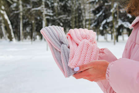 Girl with a sports headband. Preparation for sports exercises. Sports concept.