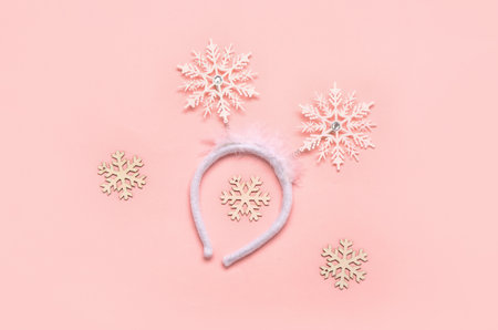 Christmas composition with decorations and toys, greeting card, minimal holiday concept, modern new year background, banner for the screen, space for text,