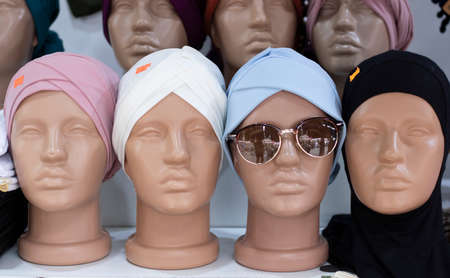 the digital photo female dummies of the heads for of headdresses, woolen knitted caps and silk scarves