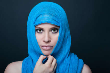 beautiful woman covers her face with hi jab.fashionable arabian style girl.beauty portrait