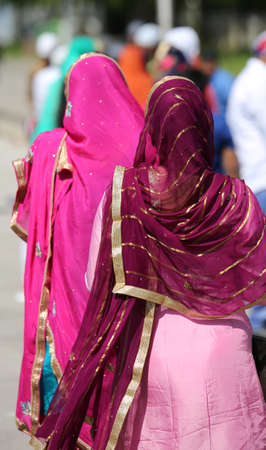 Beautiful Indian woman with traditional Indian saree costume, veil covering her face, revealing eyes only.