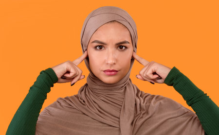 Portraiture of Muslim Girl wearing hijab.Serious face reaction.