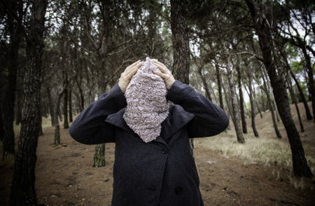 Unrecognizable Person, Head Wrapped in Pink Fabric, Symbolizing Identity, Censorship, or Silence.