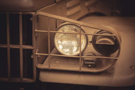 Closeup of a headlight of a vintage car. Selective focus.