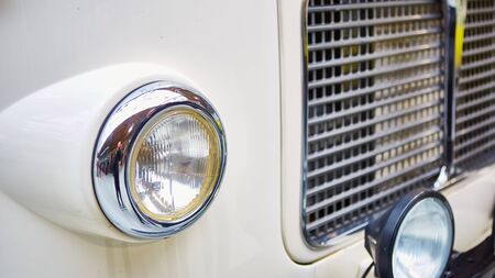 Detail of classic car. Close-up of headlight