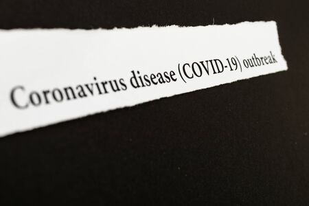 Coronavirus breaking news headline clipping from newspaper. Coronavirus outbreak and COVID-19 crisis concept. Text. Macro view.