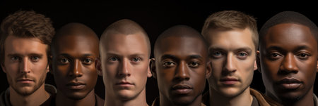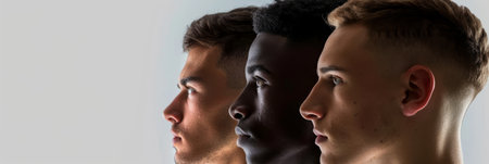 Profile view of young men of different nationalities, ethnicity and skin color, diversity
