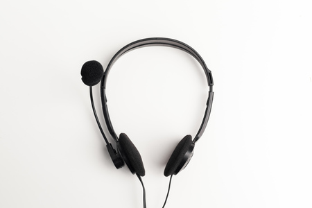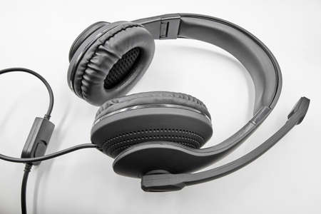 headphones with a microphone on a white background concept of remote work, operator, technical support