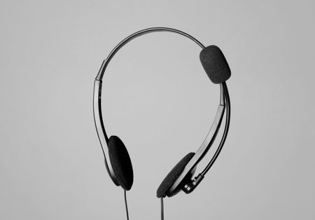 Headset with microphone in air on light grey background