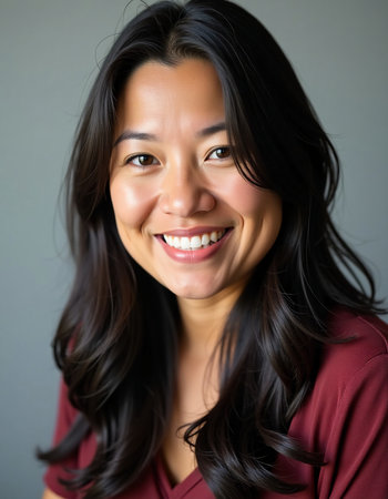 An Alaskan Native woman radiates warmth and confidence, her smile reflecting pride in her cultural background.