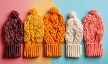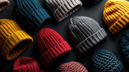 Woven knit hats in vibrant colors decorate the warm crowd generated by artificial intelligence