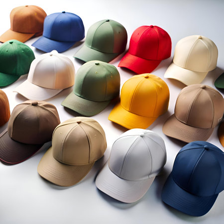 A collection of blank baseball caps in various colors. perfect for showcasing your brand or design.
