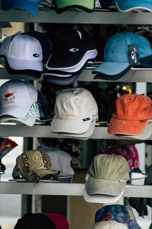 HONG KONG, CHINA - CIRCA JANUARY, 2019: various caps on display at a store in Hong Kong.