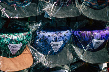 Budapest Hungary july 14, 2020 View of decorative objects sold in a souvenirs shop located in the historical streets of Budapest, the capital of Hungary
