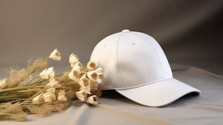 white Cap with blank front, realistic on a mockup template in a white table in a luxury home