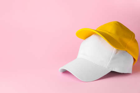 Stylish baseball cap Modern mockup on pastel background.